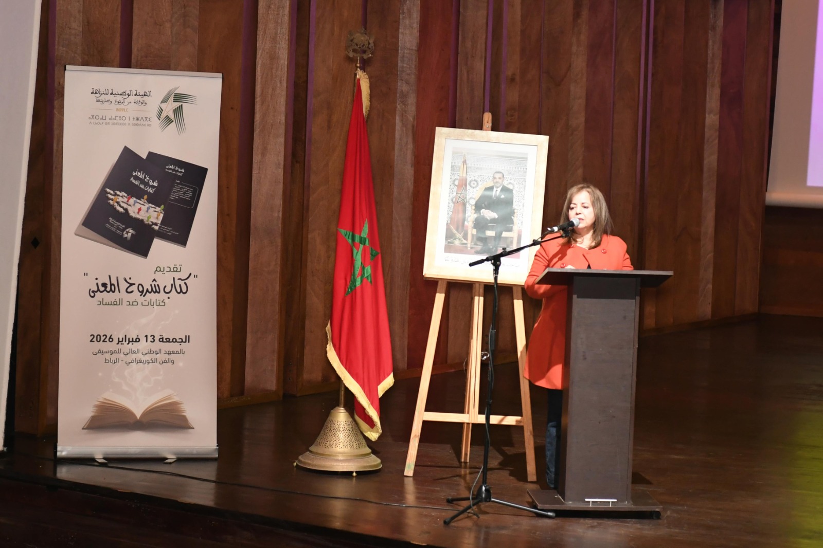 نظّمت الهيئة الوطنية للنزاهة والوقاية من الرشوة ومحاربتها يوم الجمعة 13 فبراير 2026، لقاءً ثقافياً وفكرياً، احتضنه المعهد الوطني العالي للموسيقى والفن الكوريغرافي بالرباط، بحضور نخبة من المثقفين والباحثين والمهتمين بقضايا الحكامة ومحاربة الفساد وتدبير الشأن العام، وذلك بمناسبة تقديم الكتاب الجماعي المعنون بـ "شروخ المعنى: كتابات ضد الفساد".