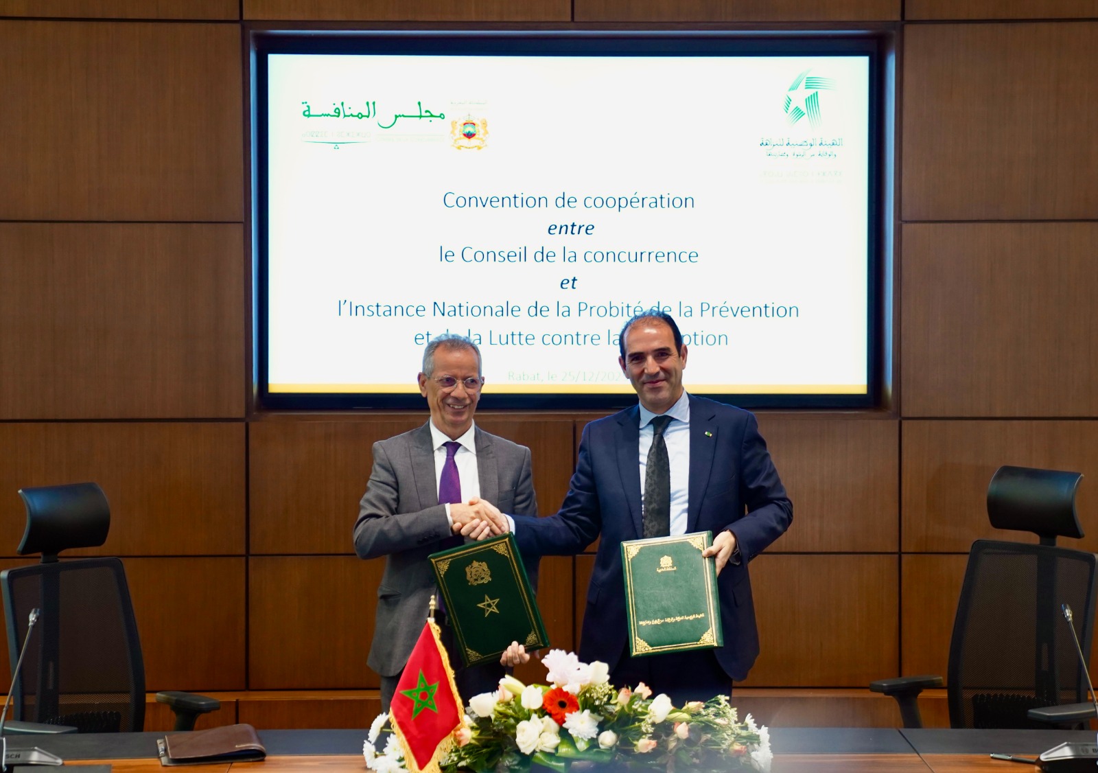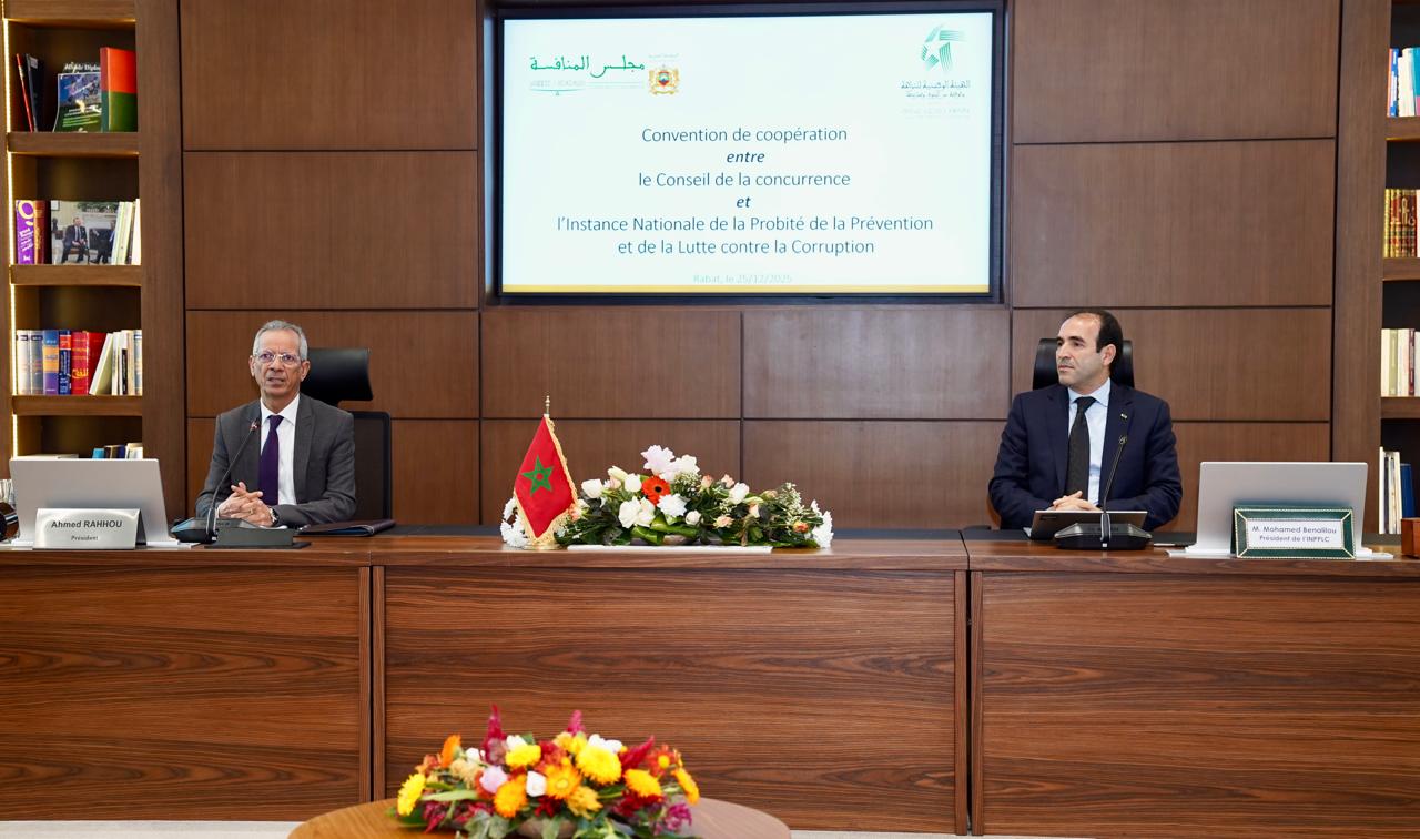 تم يومه الخميس 25 دجنبر2025، بالرباط، التوقيع على اتفاقية تعاون بين مجلس المنافسة والهيئة الوطنية للنزاهة والوقاية من الرشوة ومحاربتها، تروم تعزيز التنسيق والتكامل المؤسساتي بين هاتين الهيئتين الدستوريتين المستقلتين، وذلك في المجالات المرتبطة بترسيخ مبادئ الشفافية والنزاهة، وضبط الممارسات الاقتصادية، وتعزيز الحكامة الجيدة.